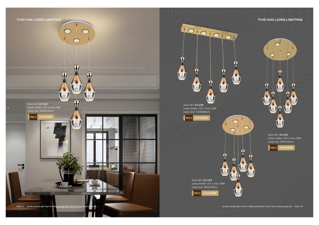 Các sản phẩm đèn của Thái Kim Long được làm từ chất liệu chất lượng cao, có độ bền và độ an toàn cao. Thương hiệu này thiết kế các sản phẩm đèn đa dạng về kiểu dáng, từ đèn chùm, đèn treo trần, đèn bàn, đèn tường cho đến đèn led dây, đèn led trang trí, đèn đuôi trâu, đèn đuôi cọp, đèn đuôi cá, đèn đuôi rồng...